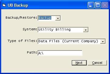 The backup option will allow you to make a backup of your data files to some other media. We recommend you make daily backups, and we recommend you keep several sets of backups, covering up the old backups no more often than every three or five days. You will be asked the system you wish to backup. You will be asked if you want the data files or the programs. You should choose data files for your daily backups. The programs will only need to be backed up as changes are made to them. You will be asked the path. This could be A:\ if you are using diskettes. It could be a USB drive or your CD drive designation if you are backing up to a CD. If you are on a network, you could even backup the network files to your local C:\. To have daily backups, you would probably want to have a separate folder for each day and make that part of the path name. For example, you might want a folder called "Monday" and use it once a week. If you are backing up to diskettes, the path would simply A:\ and you would use different diskettes for each day of the week. The USB drive seems to the easiest to use and much safer than a diskette. You can actually place many backups on the same USB drive. When placing more than one backup on a USB drive, be very careful to put a unique name on the Path. For example, if your USB drive designation is F:\ , you should be very careful to make the Path some unique name such as F:\Payroll12-12-08 and then use different dates for each payroll backup. Please note, you cannot use a slash ( / ) or a backslash ( \ ) in the path name. When restoring, be very careful to identify the correct set of files and use that name as part of the path name. Backing up to a CD takes lots more steps, but could be even safer that a USB drive and will hold more backups. Since you can not write directly to a CD, you must first backup to some other location, such as your C: drive. For example, you could set the Path as c:\Pr12-12-08 and backup to there. You would then go to My Computer and click the C: drive. Locate the folder Pr12-12-08, right click and choose to Copy. While still in My Computer, locate the CD drive. You must right click and choose the Explore option. Do not click on the CD drive! You will get a big screen of files that currently reside on the CD. Right click in an open area and choose to Paste. The final step is to click Files at the top of the screen and choose to Write these Files to the CD. Just as with using a USB drive, always make sure the folder name is unique, or you will cover up another backup. When restoring from a CD, you can use the direct path name to the files, such as e:\pr12-12-08. Be sure you have inserted the CD before you take this step. . | |