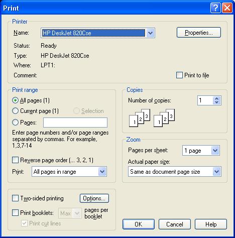 will communicate with your printer. Just enter the number of characters you wish to see on a line and the number of lines you wish to see on a page. You will only see a series of x's printed. You could enter one character and one line just to see if it prints.