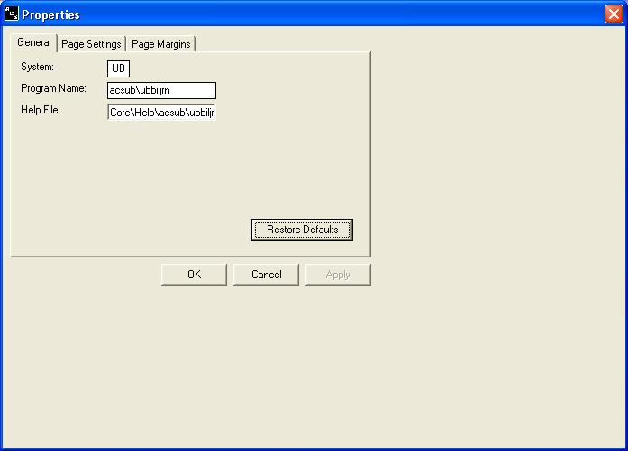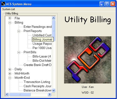 Select the page settings option. You will see other options that can be changes, but you should not change any thing but page settings unless instructed so by ACS. These other options control such information as the help file names, etc. These will not change unless new help files are sent out. Orientation: You can choose either portrait or landscape. Most often you will only use landscape if the report is so wide it wraps on a regular sheet of paper, even in a very small font size. You could have other reasons for selecting landscape, if nothing more than to be able to use very large fonts for ease of reading. Height: Normal paper is 11 inches high. If you wish to landscape a report, change the height to 8.5 inches. If you have special forms, which, for example, might be 4 inches high, you could enter 4. The height is always set in inches or partial inches. Width: Normal paper is 8.5 inches wide. If you wish to landscape, set the width to 11 inches. Lines: You must experiment with the line settings. The smaller the font size, the more lines you can get on a page. Whether you are set for landscape or portrait will also affect the number of lines available for printing. The size of the report heading is also a factor. Just set the line setting to something reasonable and see how it looks. For example, with a font size of ten, you have about 60 lines available. With a font size of 7, you have approximately 90 lines available. Once you have decided on a font size and orientation, set this line count. Run a sample report. Look at the bottom of a page. If you see a lot of blank space, increase the line count. If the report is wrapping into the next page, decrease the line count. You will just have to experiment to get the maximum lines per page. Columns: The number of columns refers to characters allowed on a line. Normally you can not set this too high, but it can be set to low. If you have a very wide report and you have landscaped it and you have set the font size as small as possible and it still has space available at the end of line, yet it keeps wrapping, consider increasing the columns. This will normally eliminate the problem. Font Size: The font size adjusts the size of the print. A font size of 10 is about the standard size print most people like to see. A font size of 7 is about as small as most people can easily read. Our suggestion is to set the font size as large as possible without having the print wrap to the next line. Save to as Start: This option will allow you to have the document saved to any place on your hard as it is being printed. Your response should include the full path name. For example, if you would like to have the billing journals saved each time they are printed so you can access old billing journals from the computer, rather than digging through stacks of paper copies, you can enter a file name here. An example for a single user might be c:\Documents and Settings\All Users\My Documents\Utility Billing\Billing Journals-%D.rtf. The path could be as simple as c:\Ubreports. It just needs to be something everyone can remember. If you are on a network and other people also need to access the reports, you would need to use a shared network drive instead of the c:. | |