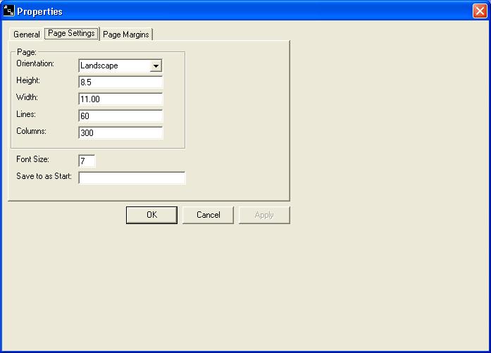 You have the ability to set the way each report is printed. You can change such settings as the font size, orientation (portrait or landscape), page width and height, and lines per page. Right click on the menu option you wish to set. Click on properties.