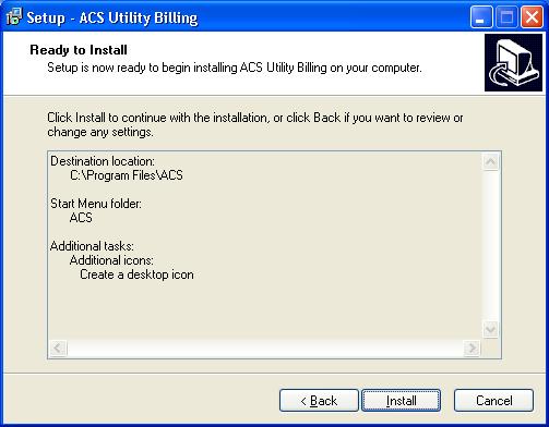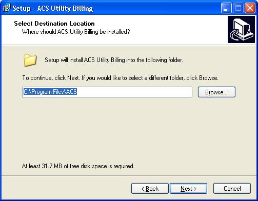 Where do you want the software installed? The default is C:\Program Files\ACS. To keep all systems installations as similar as possible, we would prefer that you use this default destination.