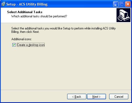 Again, we would like for you to use ACS as the Menu Folder name. This name will be used to access ACS if you choose to click on Start and then Programs from your desktop. You will also have an icon to use in selecting the ACS software. Be sure to indicate you want to Create a Desktop Icon. If the box is not already checked, be sure to check it. Then take Next.