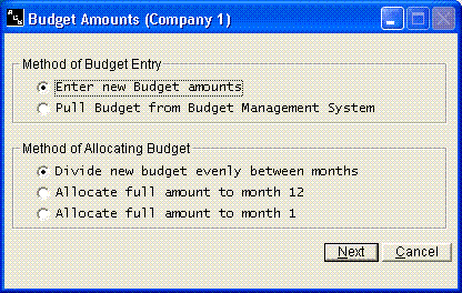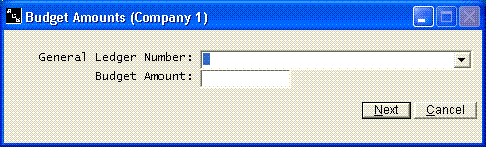 Enter Budget Amounts will allow you to quickly update the budget amounts in each General Ledger account. The option is found under Annual. You could enter the new budget amounts by going directly to the general ledger master file, but this special budget entry program will be much quicker and will produce a report of the budget changes. Later changes can be made directly to each account if that might be easier.