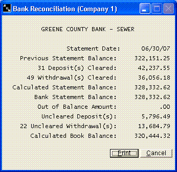 been cleared, choose Cancel to return to the main reconciliation menu.