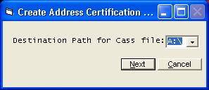 The system has the ability to print a postal bar-code on the bottom of the bills. This can save several dollars in postage each month, but you must get your addresses certified every six months. You must mail a current copy of your addresses to ACS for certification. This menu option will create the file to be mailed. The file will be written to diskette. Be prepared to enter a blank diskette in the drive. You will receive a certification form when your files are returned to you. This form contains your next expiration date. | |