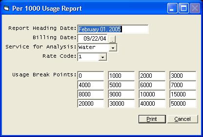 The Per 1000 Usage Report is another great way to analyze your usage, other than the Usage Report. The Per 1000 Usage Report allows you to choose Break Points and analyze any of your metered services.