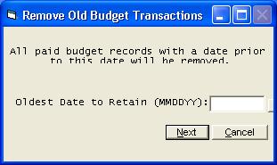Remove Old Budget TransactionsHelp Home | System Home | Core | Errors | |
