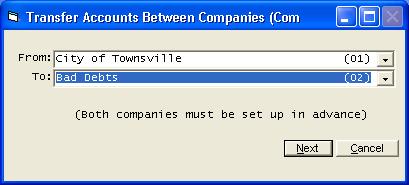 Transfer Accounts Between Companies Help Home | System Home | Core | Errors | |